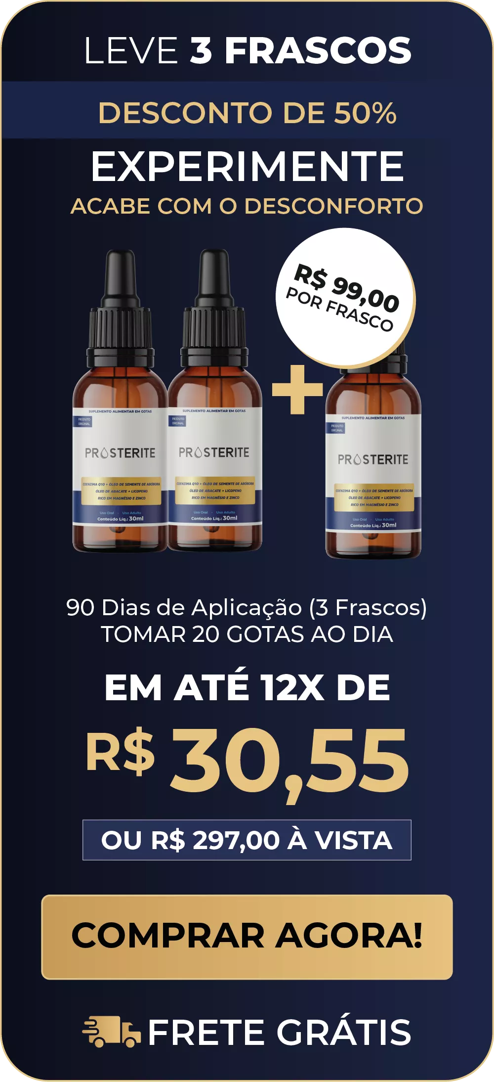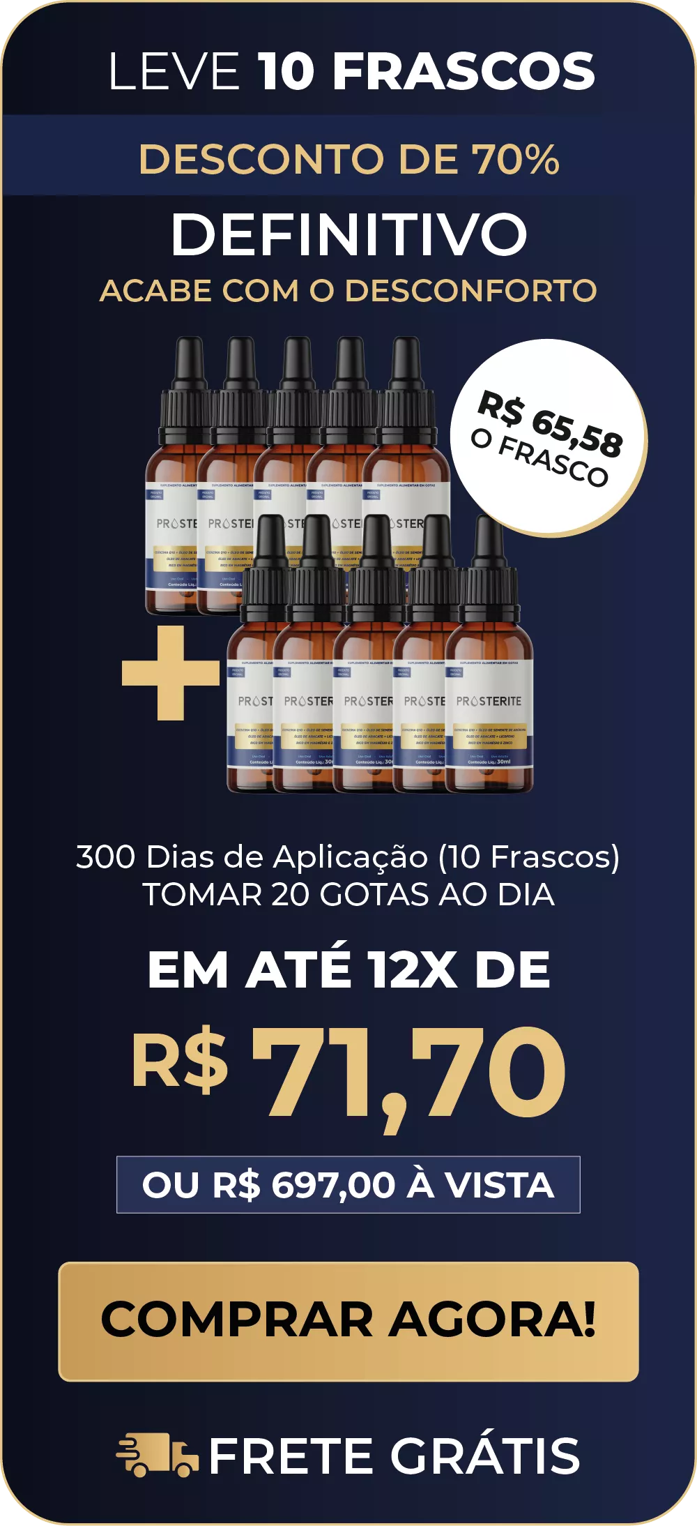 O Prosterite é um tratamento natural em gotas desenvolvido por cientistas japoneses para reduzir o inchaço da próstata, aliviar os sintomas urinários e normalizar os níveis de PSA, sem cirurgia, sem hormônios e sem efeitos colaterais.